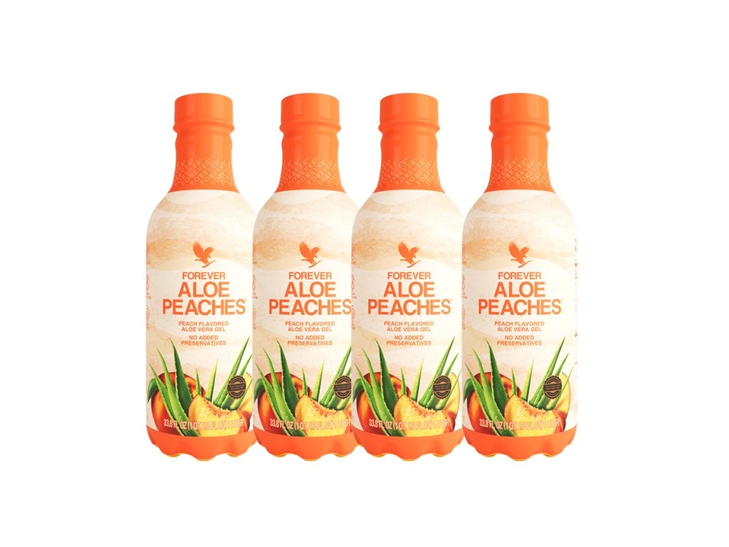 Forever Aloe Peaches je skvelý spôsob, ako piť svoje každodenné aloe. Tento nápoj obsahuje 84,5% stabilizovaného gélu z vnútorného listu aloe vera spárovaného s prírodným broskyňovým pyré pre udržanie vášho imunitného systému a udržanie prirodzenej energetickej hladiny. Použitá aloe je ručne zbieraná z našich vlastných polí a je prvou svojho druhu, ktorá získala certifikát čistoty a účinnosti od Medzinárodnej vedeckej rady pre aloe (IASC).