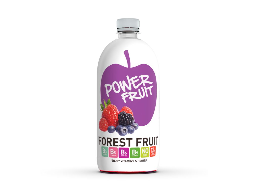 12% ovocný, nízkoenergetický, lesný ovocno-jablkový nápoj s filtrovanou vodou, pridanými vitamínmi B3, B5, B6, B9 a sladidlami v balení 750 ml.