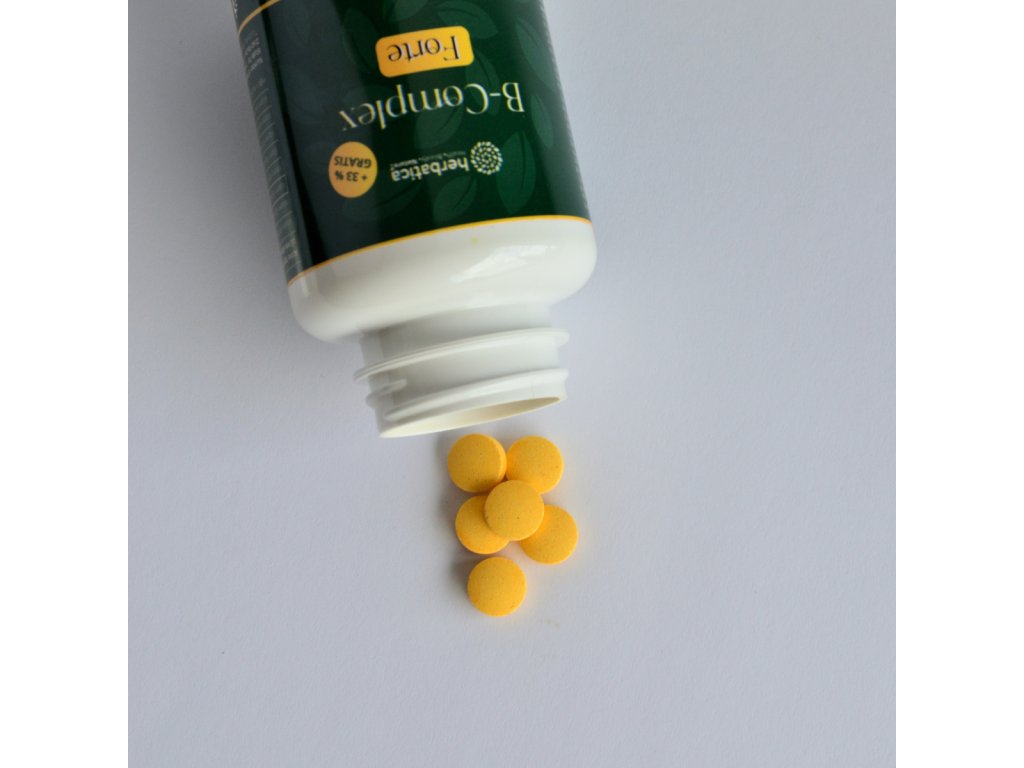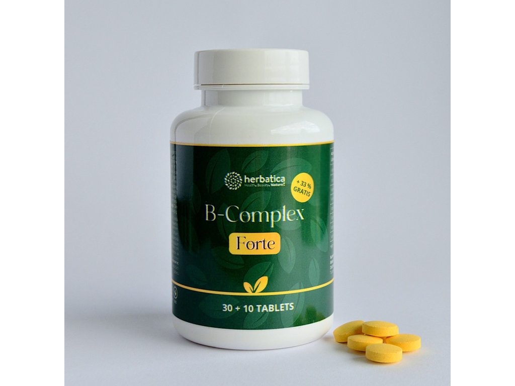 Silná dávka vitamínov skupiny B pre vašu energiu, psychickú rovnováhu a zdravú pleť, vlasy aj nechty. B-Komplex Forte od Herbatica podporí vašu vitalitu a zvládanie stresu – každý deň. Vyrobené na Slovensku.
