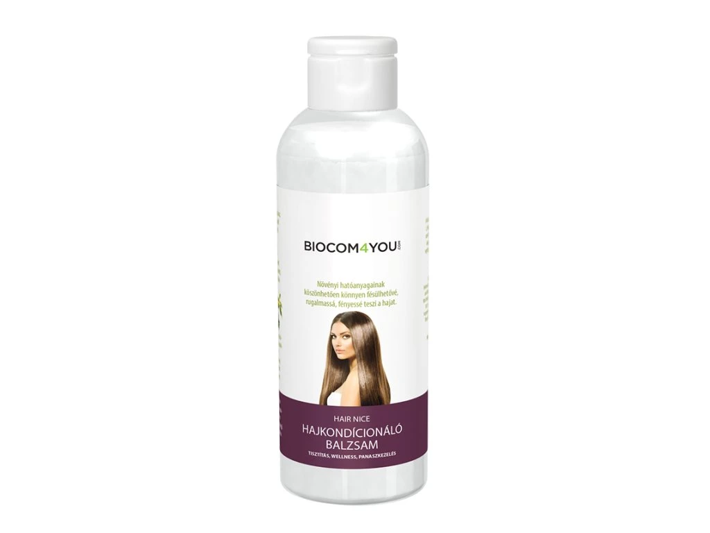 Biocom Hair Nice balzam na vlasy - kondicionér je nepostrádateľným na suché, farbené a lámavé vlasy, na regeneráciu rozštiepených končekov vlasov, ako aj na uľahčenie rozčesávania. Dodáva vlasom prirodzený lesk.