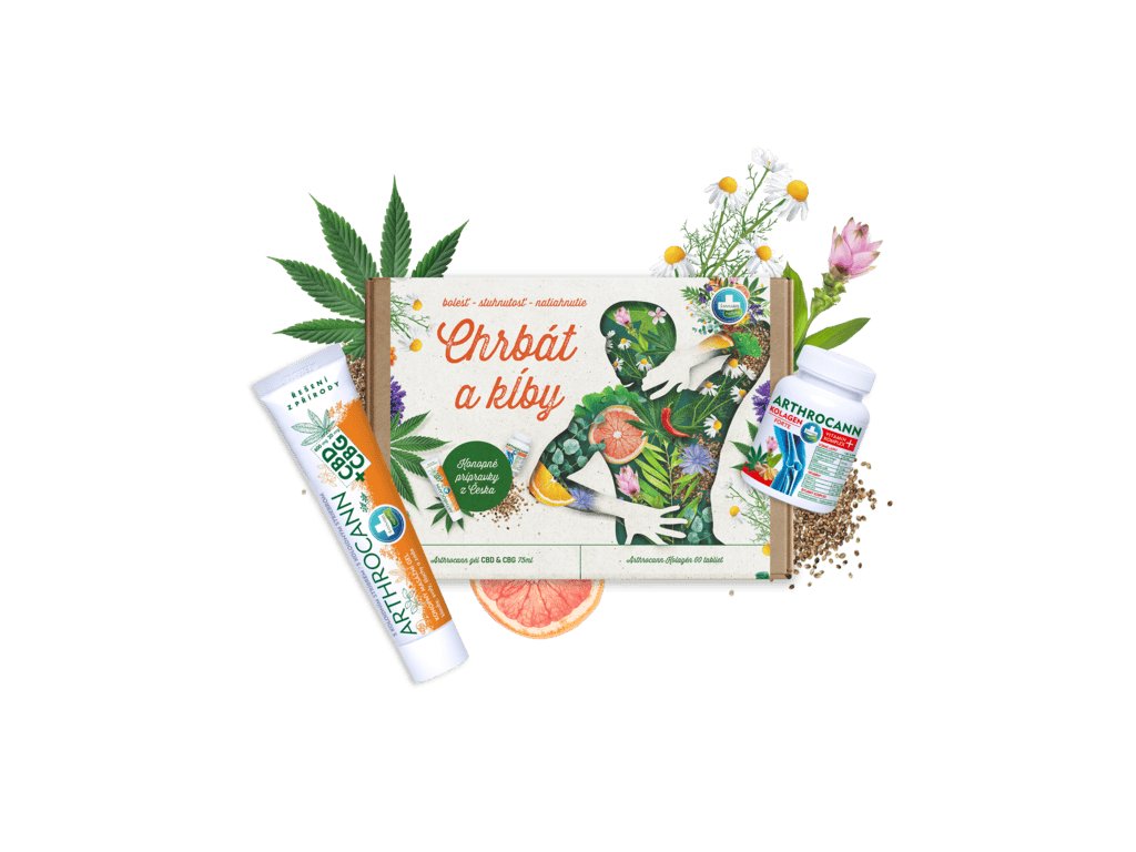 Darčeková sada CHRBÁT A KĹBY prináša úľavu pre pohybový aparát a podporu kĺbov. Obsahuje gél Arthrocann s vysokým obsahom CBD a CBG a kolagénový vitamínový komplex. Ideálny darček pre aktívnych ľudí, športovcov a všetkých, ktorí chcú prirodzene podporiť zdravie kĺbov.