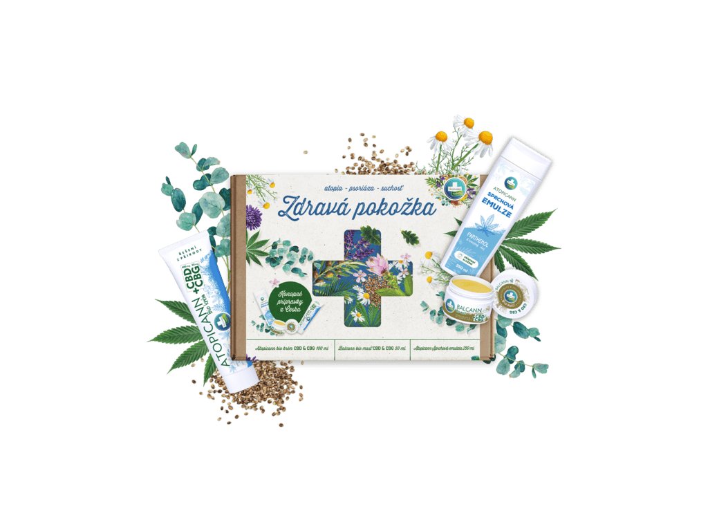 Darčeková sada ZDRAVÁ POKOŽKA obsahuje prírodné produkty určené na starostlivosť o citlivú, suchú pokožku so sklonom k ekzémom a psoriáze: sprchovú emulziu, regeneračný krém a lokálnu masť s vysokou koncentráciou CBD a CBG. Sada je perfektným darčekom pre každého, kto bojuje s citlivou, suchou pokožkou, ekzémami či psoriázou a preferuje prírodnú starostlivosť.