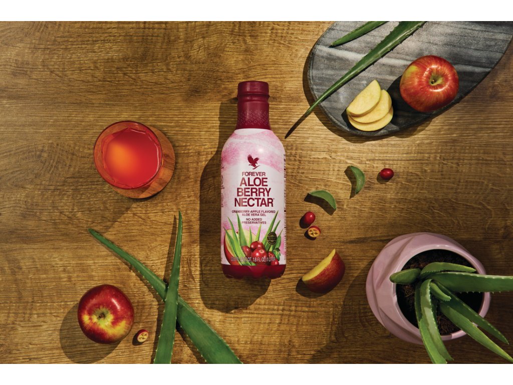 Forever Aloe Berry Nectar kombinuje čistý gél z Aloe Vera (90,7%) s brusnicovou a jablkovou šťavou, čím ponúka výživný nápoj bohatý na antioxidanty a fytonutrienty.
