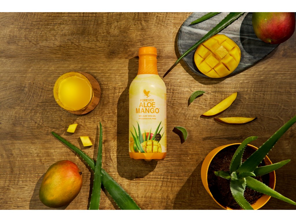 Forever Aloe Mango (1 liter) – osviežujúci nápoj s Aloe Vera a mangom, ktorý podporuje trávenie, imunitný systém a detoxikáciu. Obsahuje 86 % čistého Aloe Vera gélu a 10 % mangového pyré, čím ponúka lahodnú tropickú chuť a vysokú výživovú hodnotu. Bez konzervačných látok, obohatený o vitamín C.