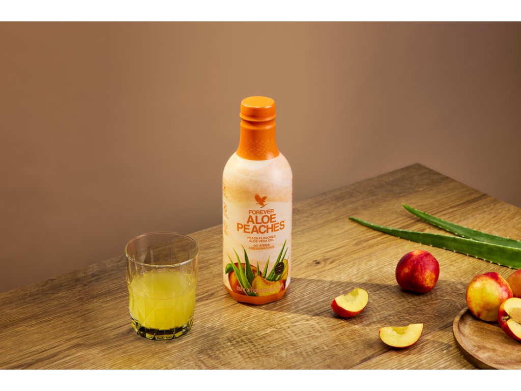 Forever Aloe Peaches (1 liter) – osviežujúci nápoj s Aloe Vera a broskyňovým pyré. Obsahuje 84,5% čistého Aloe Vera gélu, ktorý podporuje trávenie, imunitný systém a vstrebávanie živín. Vychutnajte si prírodnú sladkosť broskýň a zároveň doprajte telu antioxidanty a dôležité vitamíny.