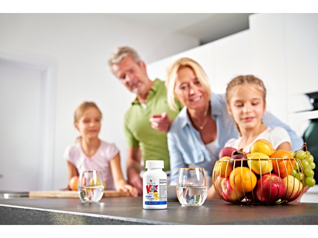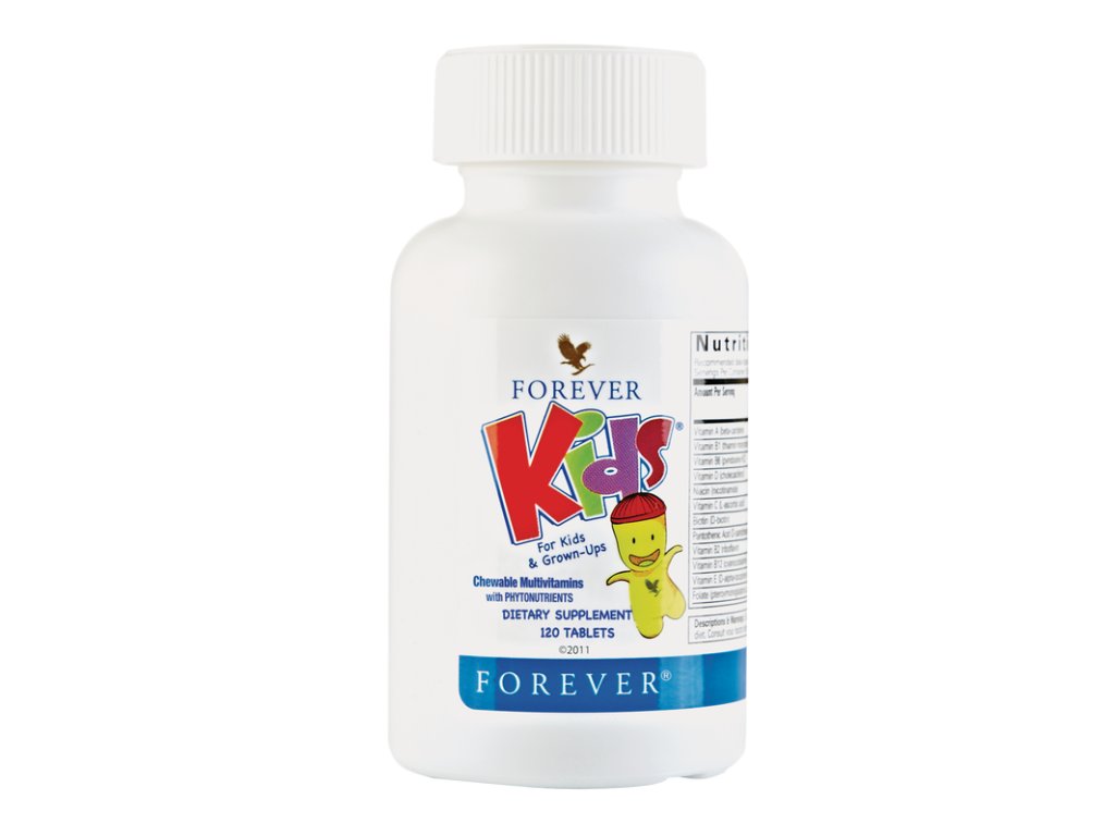 Forever Kids™ (120 tabliet) – Komplexné multivitamíny pre deti vo forme žuvacích tabliet s 12 vitamínmi a 6 minerálmi. Obsahuje fytonutrienty zo 16 druhov ovocia a zeleniny, podporuje zdravý rast, imunitu a kognitívne funkcie. Bez pridaného cukru, umelých farbív a konzervantov.