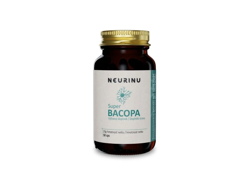 NEURINU® Super Bacopa obsahuje štandardizovaný extrakt Bacopa monnieri s vysokým obsahom 200 mg bakosidov v 1 kapsule. Podporuje pamäť, koncentráciu a odolnosť mozgu voči stresu a oxidačnému poškodeniu. Ideálne pre duševne vyťažených, vhodné aj pre vegánov. Balenie vystačí na 50 dní.