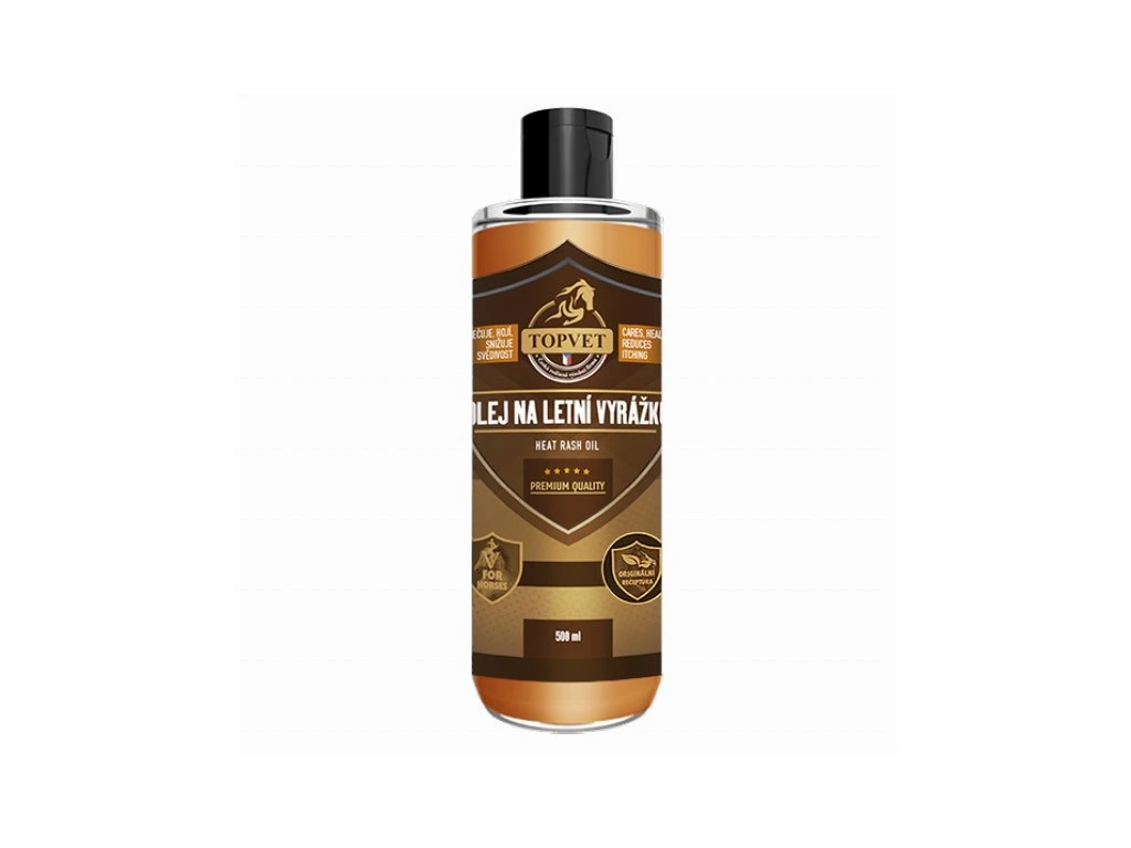 Olej na letnú vyrážku je veterinárny prípravok určený pre kone s náchylnosťou na kožné problémy, ako sú svrbenie a podráždenie počas letných mesiacov. Tento produkt obsahuje bylinnú receptúru, ktorá vyživuje, hydratuje a chráni pokožku pred vonkajšími vplyvmi. Pôsobí dlhodobo, pomáha zmierniť svrbenie, upokojuje podráždenie a podporuje regeneráciu kože, čím zanecháva pokožku vláčnu a zdravú.