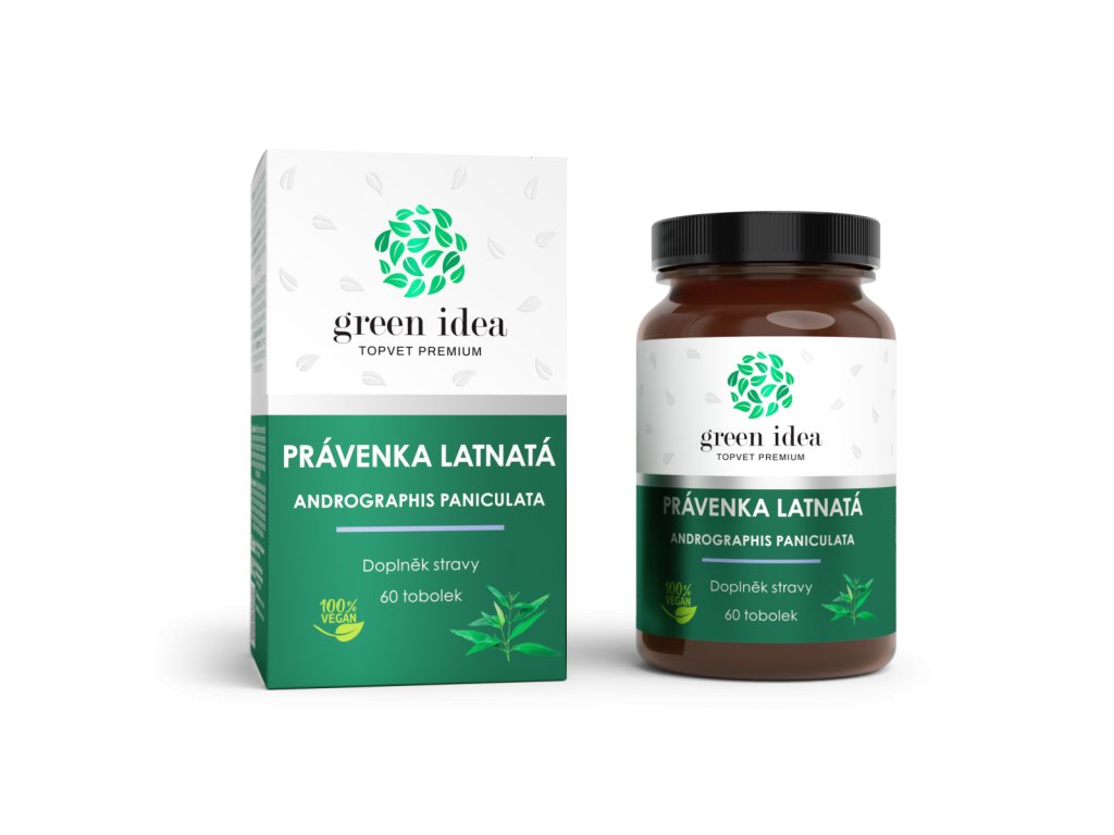 | Zloženie: | Právenka latnatá (Andrographis paniculata) – štandardizovaný extrakt z listov (10:1), mikrocelulóza (plnidlo), stearan horečnatý (plnidlo), vegetariánska kapsula. |