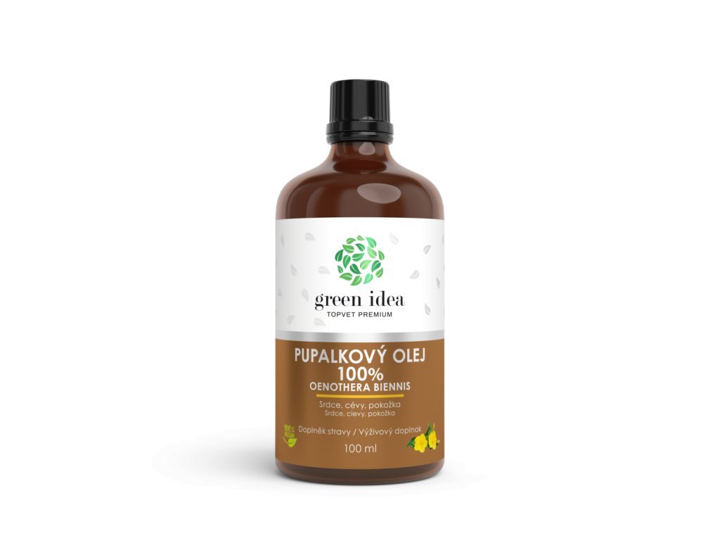 100 % za studena lisovaný pupalkový olej z pupalky dvojročnej (Oenothera biennis) je bohatým zdrojom esenciálnych mastných kyselín – omega-6 (GLA, LA). Podporuje hormonálnu rovnováhu, zdravie pokožky, vlasov a nechtov, prispieva k správnej činnosti srdca a ciev a k udržaniu normálnej hladiny cholesterolu v krvi.