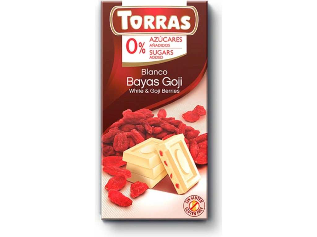 Torras Bezlepková biela čokoláda s kúskami goji bez pridaného cukru, so sladidlom (75g)